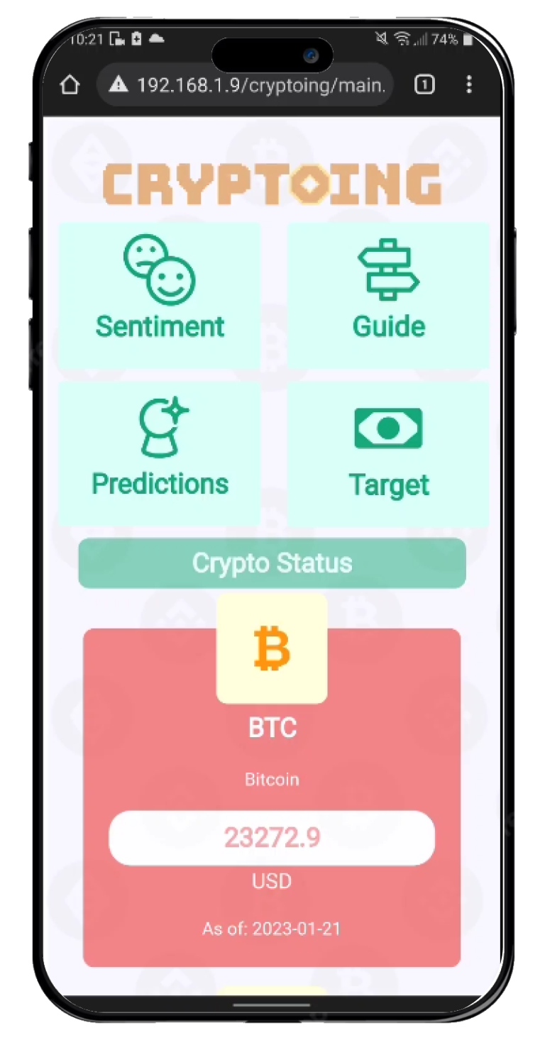 Cryptoing is a project in collaboration with AmBank that helps investors select suitable cryptocurrencies based on prediction data using AI and ML.