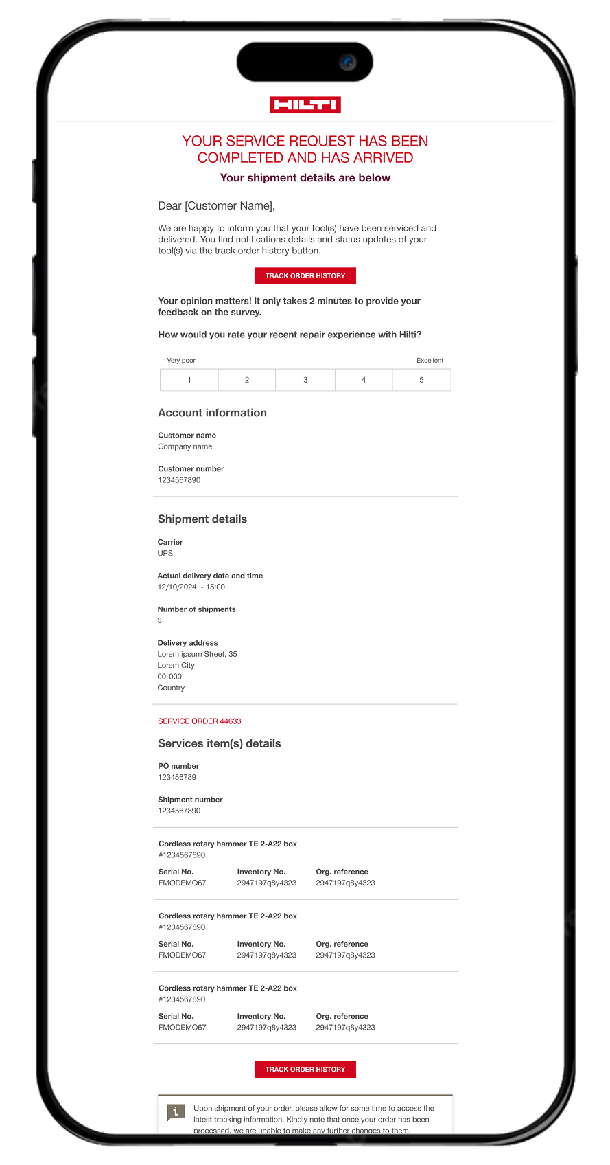 Tranparent Repair Experience provides customers with real time updates on the repair of their tool for each step of the journey.