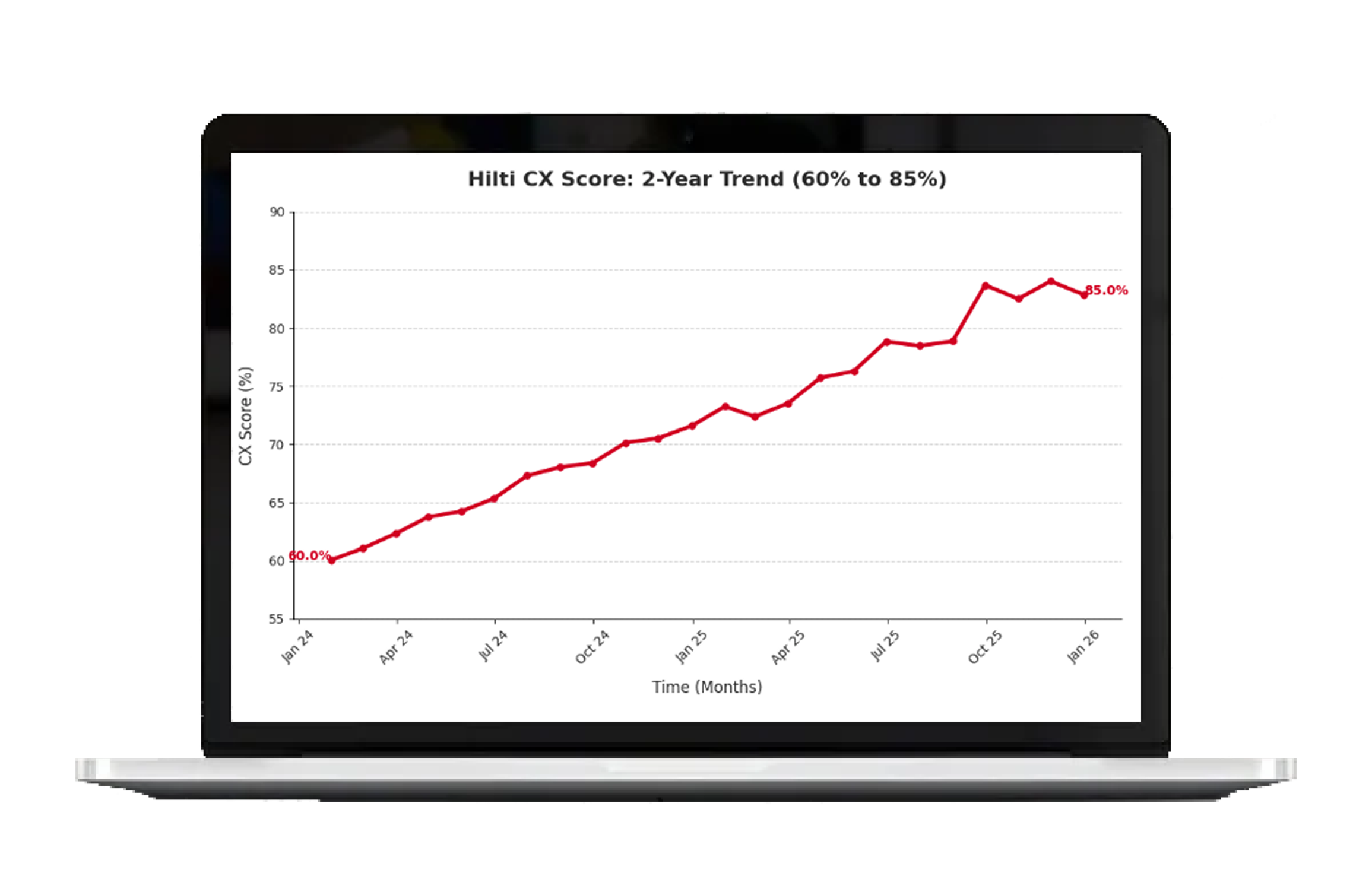Initiative to increase CX Score from 60% to 80% by end of 2025. Current CX Score (September 2025) is 85%.