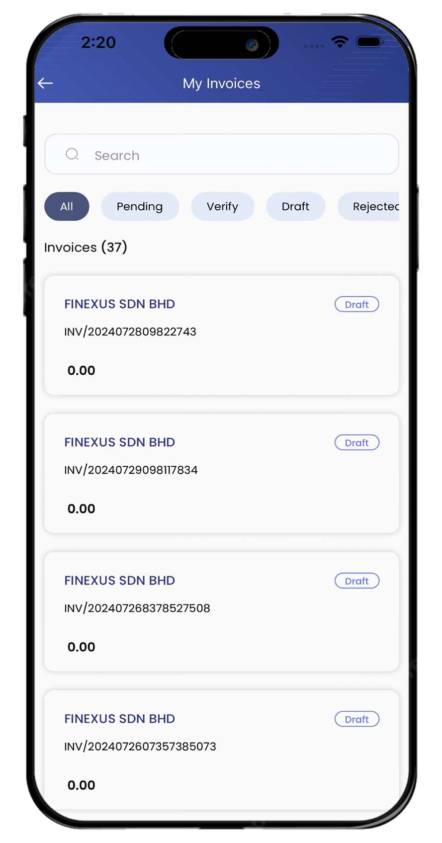 Invoice management application that helps with invoice tracking through seamless connectivity with E-Wallet app.